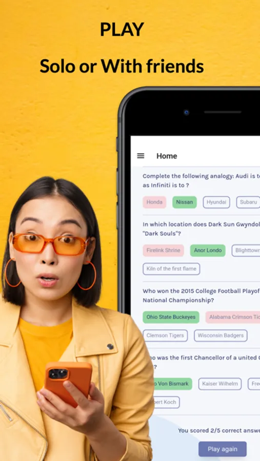 Our app is the perfect combination of fun and education, offering a wealth of knowledge in various categories like history, pop culture, science, and more.