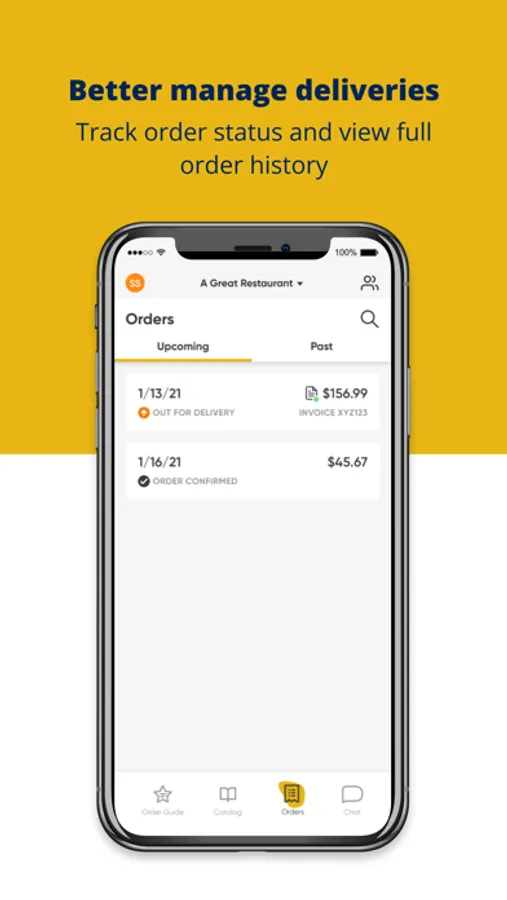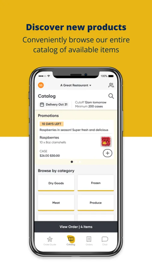 Our mobile app lets you search our complete product catalog, manage and update your ordering guide, and buy what you need at the moment you need it. It’s part of our commitment to giving you an ordering experience you’ll love.