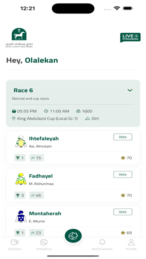 The Saudi cup nomination app is an app built for nominating horses for race wins happening during competition.