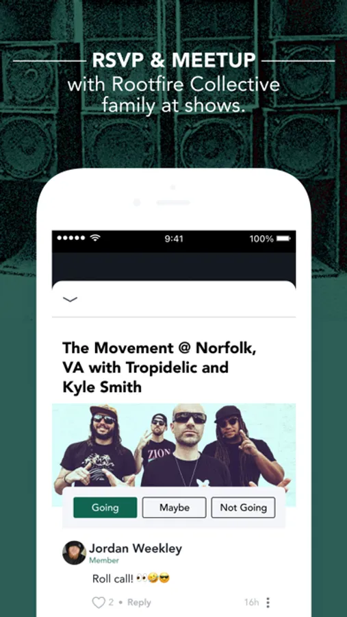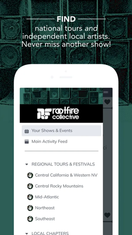 Whether you’re traveling and want to check out local talent, or you simply want to find more reggae lovers in your hometown, Rootfire Collective makes it easy. Use the app to find shows nearby, or search specific regions and cities - from national headlining acts to local bands you may not have heard of.