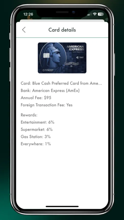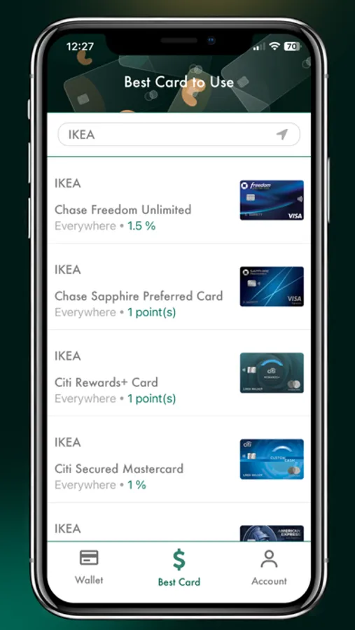 • Find the best credit cards to use for nearby merchants