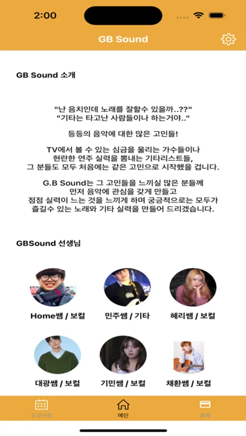 G.B SOUND의 멋진 선생님들을 내 니즈에 맞게 선택 및 수업 예약을 할 수 있습니다.
