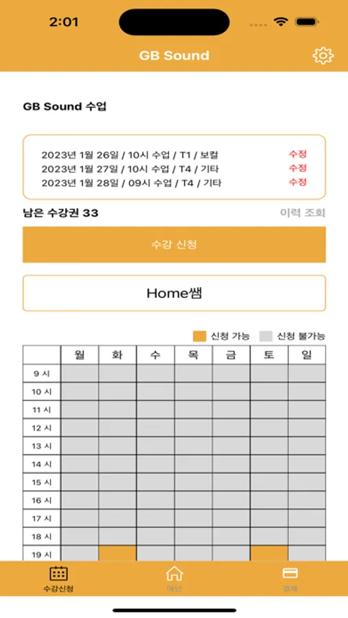 -수업 예약 매주 유동적으로 수업 예약을 하여 수강생의 일상생활 속에서 음악이라는 하나의