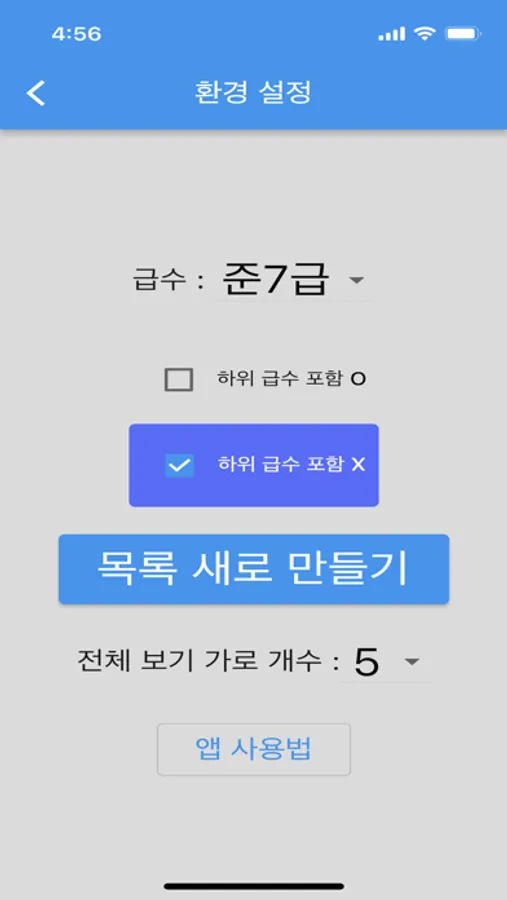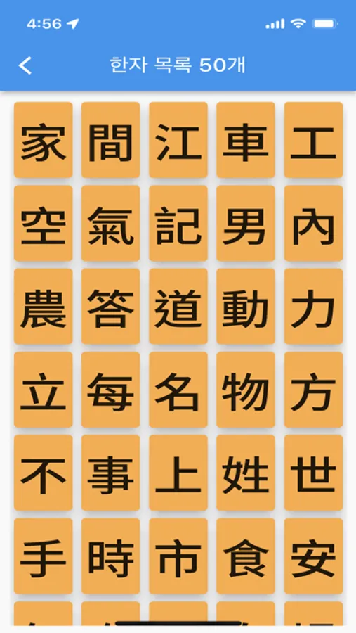 한자급수 자격시험의 한자들을 급수별로 각각의 목록을 만들어 암기할 수 있게 도와주는 앱입니다.