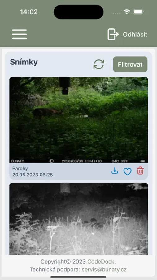 - Procházejte fascinující snímky zachycené vašimi fotopastmi.