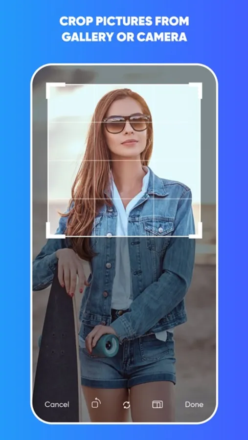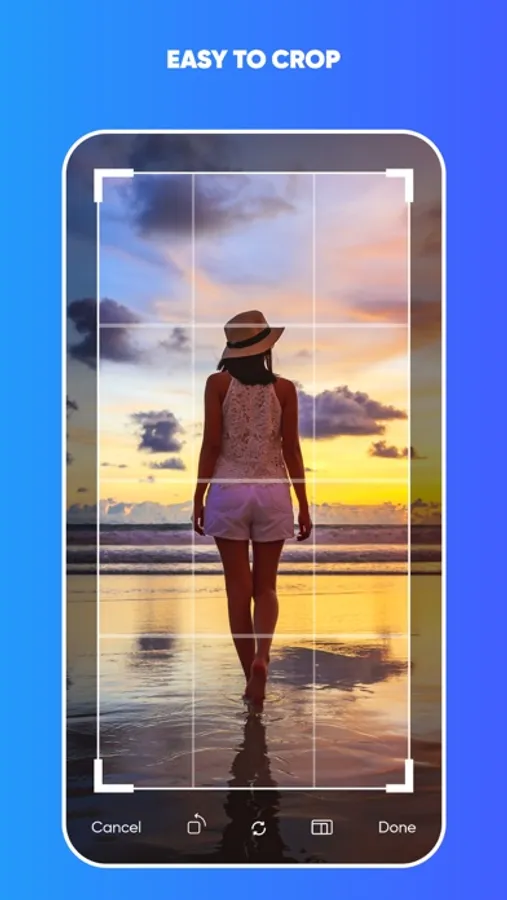 A crop feature in an iOS app allows users to selectively adjust the size and shape of an image by removing unwanted areas or focusing on a specific portion of the image. Users can upload photos and resize a cropping rectangle to isolate the desired area of the image.
