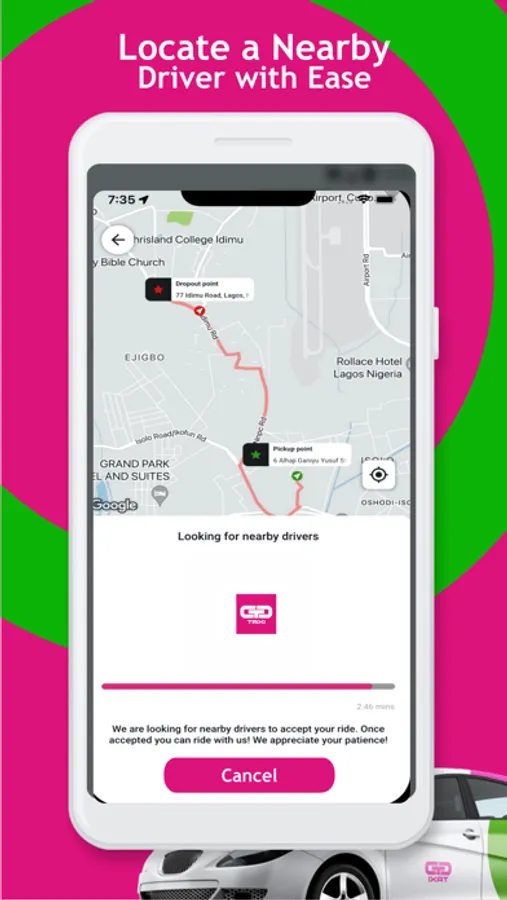 We personally meet taxi drivers in Lagos, Nigeria to see their cars and get documents confirming that they are a licensed taxi driver before activating them in the app. When you book a taxi through CTC Taxi, you get a professional licensed cab driver.