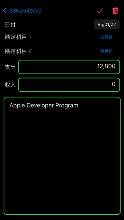 財布の中身を管理する家計簿です。クレジットで支払った時は、「精算」-「クレジット」を収入に入れて差し引きゼロにしてください。