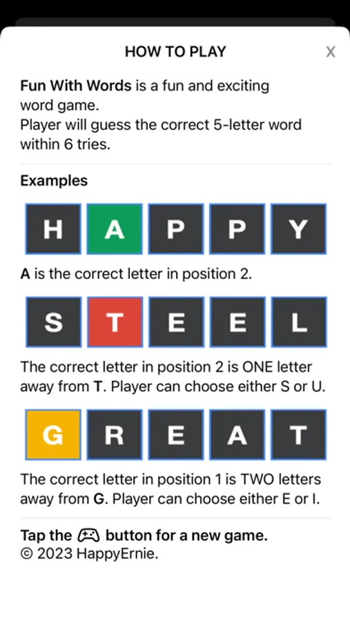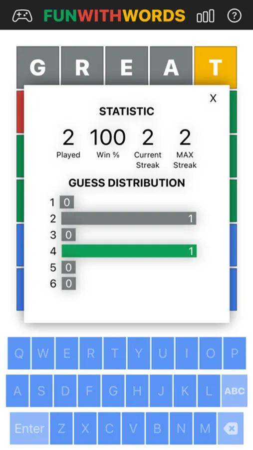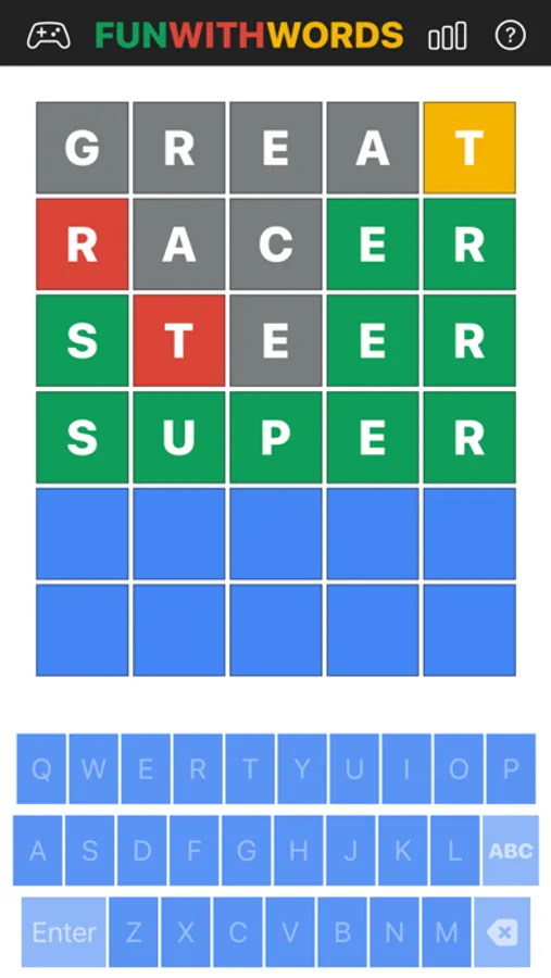 FUN WITH WORDS is a word game where player will guess the correct 5-letter word within 6 tries.
