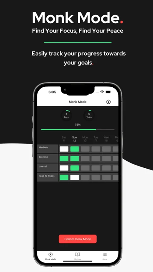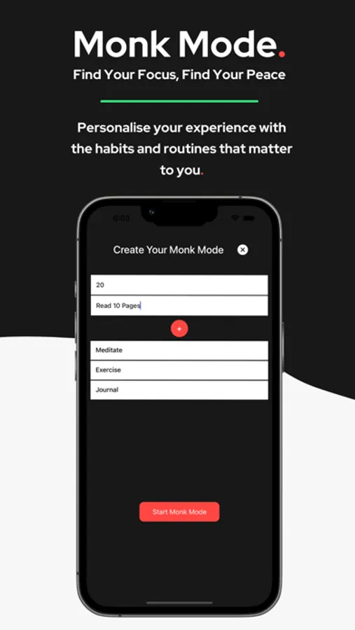 With its sleek, user-friendly interface, Monk Mode makes it easy to develop the discipline and motivation you need to achieve your goals. Whether you're looking to improve your health, increase your productivity, or simply live a more fulfilling life, Monk Mode has the tools you need to succeed. Download Monk Mode today and take the first step towards a better you!