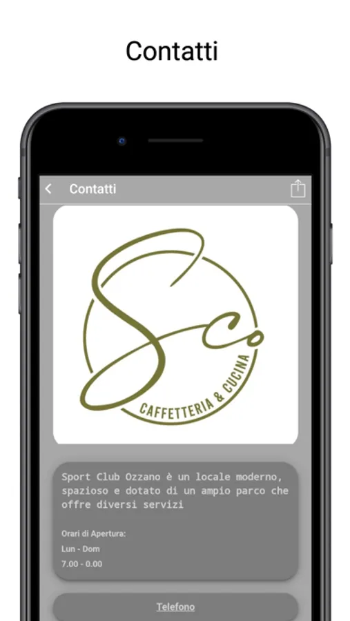 Sport Club Ozzano è un locale moderno, spazioso e dotato di un ampio parco che offre diversi servizi come bar per colazioni e aperitivi e una cucina per pranzi di lavoro. Grazie alla nostra nuova app i nostri clienti potranno essere sempre aggiornati su tutte le nostre ultime novità, promozioni, serate speciali ed eventi. Potranno vedere i nostri menù e ordinare il pranzo direttamente dall'app. Potranno anche usufruire della nostra carta fedeltà inserita nell'app.