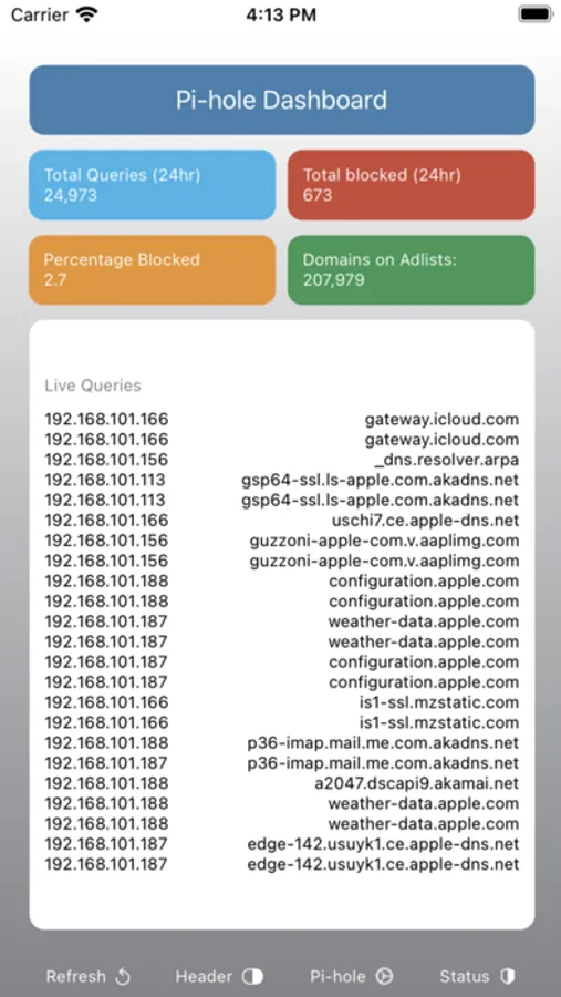 - see Total queries, Total blocked and Percentage blocked in last 24 hours