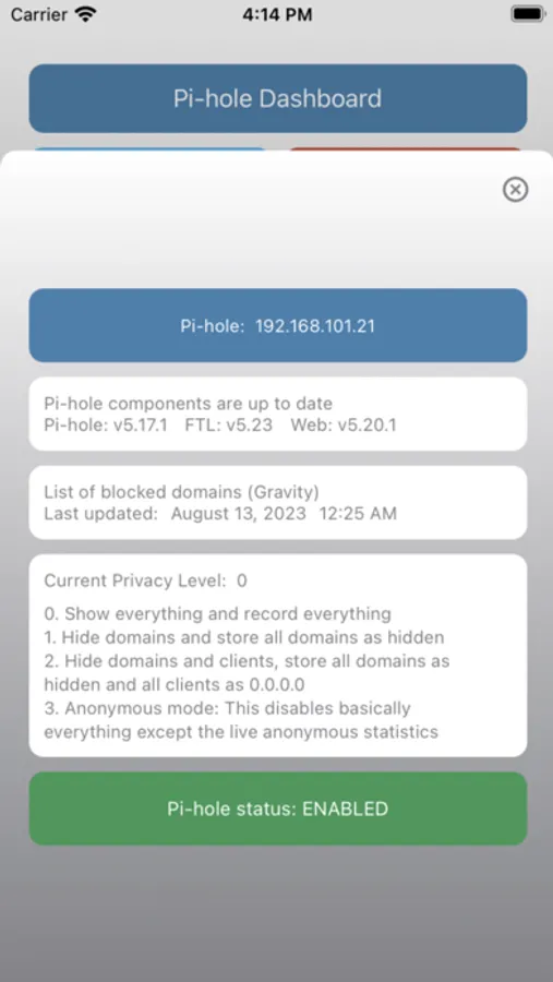 Pi-hole Dashboard is an application that I developed to provide convenient access to your Pi-hole.