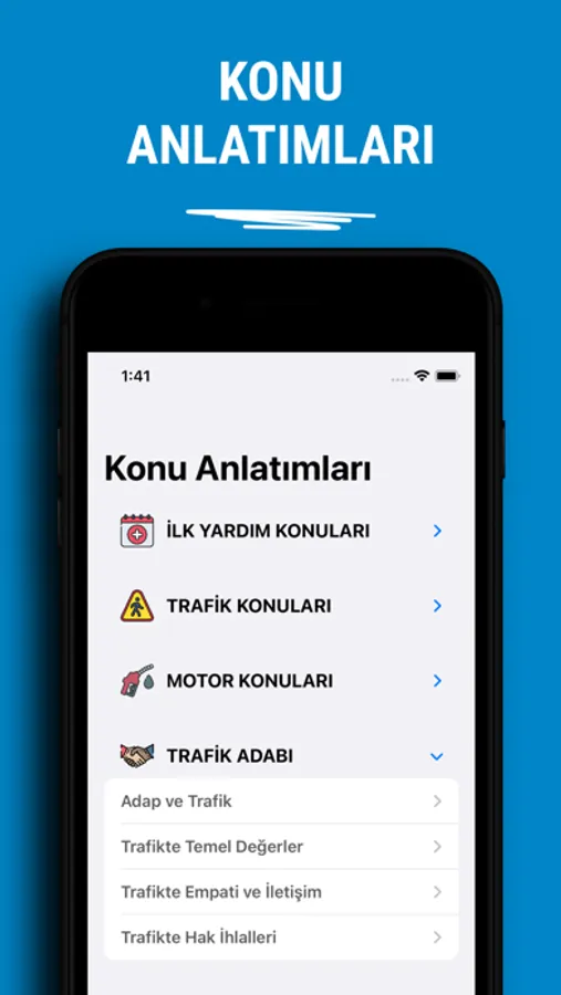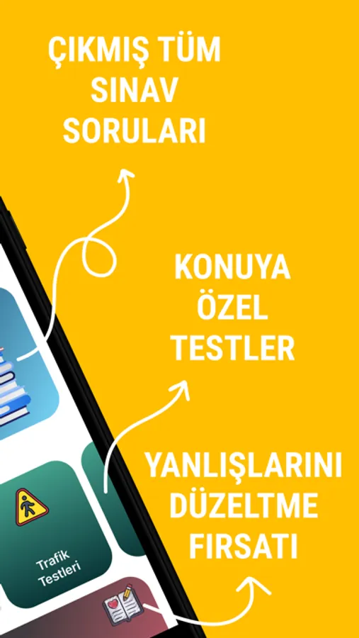 - A,B,C,D ve E sınıfı ehliyet sınav hazırlığı için tasarlandı.