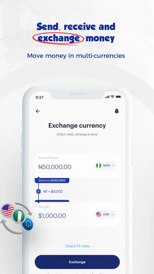 Enjoy instant money transfers, competitive exchange rates, online purchases using our physical and virtual cards, and 24/7 customer support.