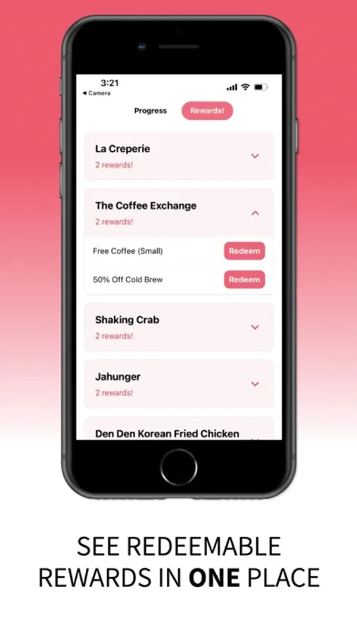 Just buy food from your favorite restaurants, and easily earn points! Track points and progress easily across all restaurants—all in one place. Simply redeem rewards with one tap. No more punch cards, points on receipts, or scattered text messages.