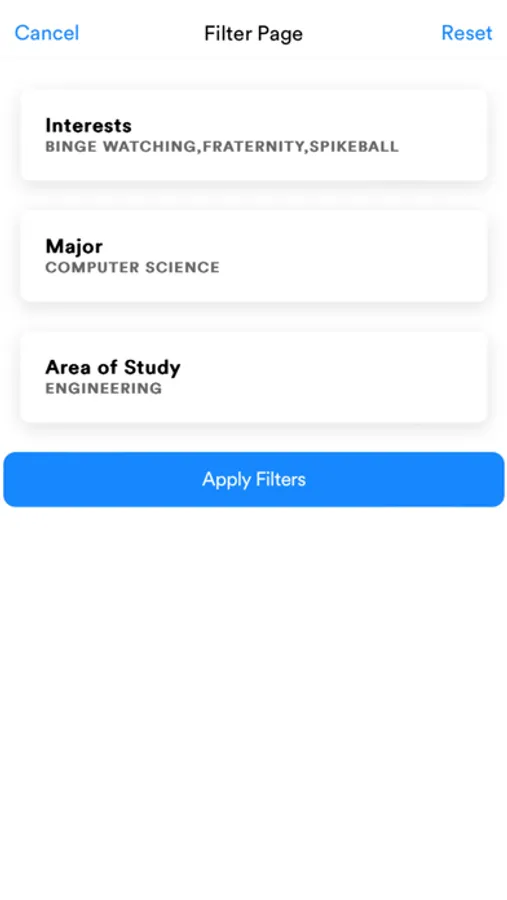 Filter profiles to match your interests and major