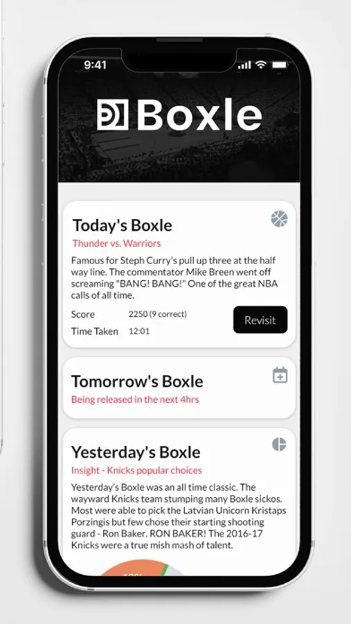 Alright, you NBA sickos! Get ready to test your knowledge with Boxle - the NBA box score guessing game. Each day, we will put up a box score from an infamous NBA game - minus the players, and it's up to you to guess who's who! Are you the biggest NBA sicko in the world? Prove it and join the fun - download the app now!