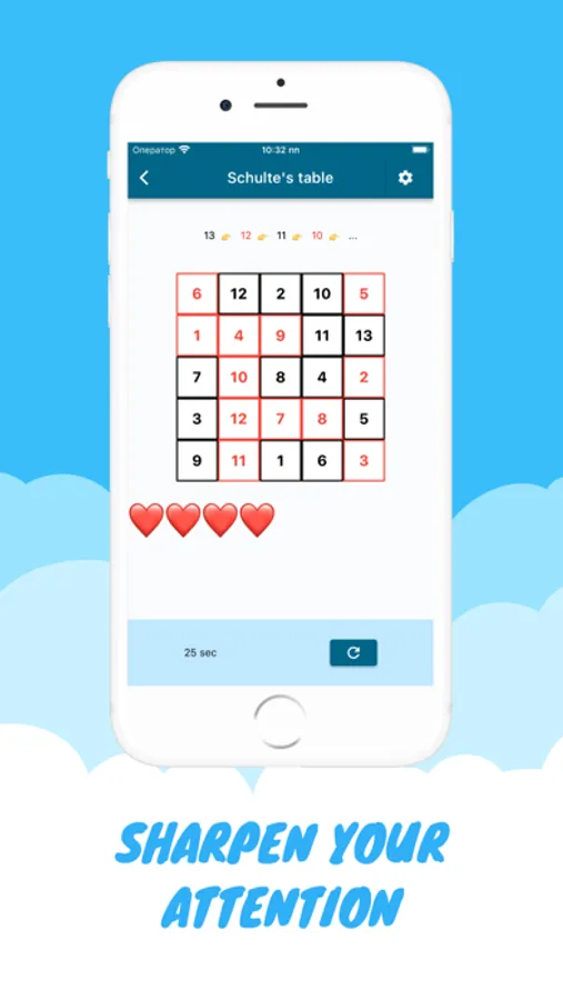 The Schulte tables offer a variety of modes to enhance focus and attention span. This game may also be useful for adults!