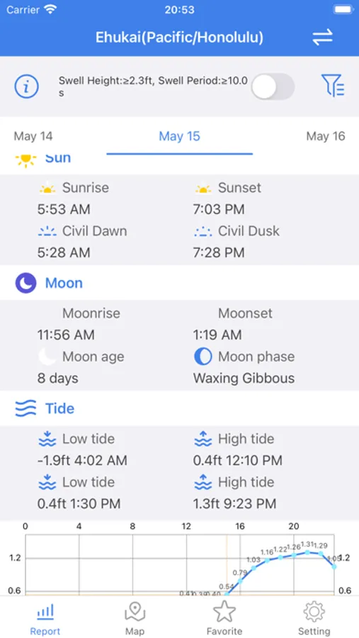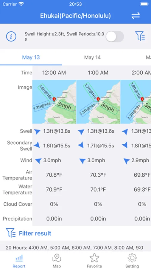 Surf Report provide surf forecast of 6268 surf spot in the world. Surf report add filter to select the best time to surf. the filter include time, swell height, swell period,