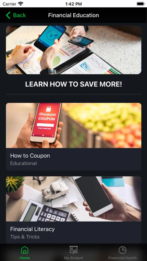 This app will provide basic financial education information. It will allow you to create a simple budget, read articles, watch videos, utilize savings tools, and contact a source to discuss help with your finances. The goal of this app is to help develop a better understanding of your financial situation. This app will not only help you understand your situation, it will provide some tools to possibly improve your situation.