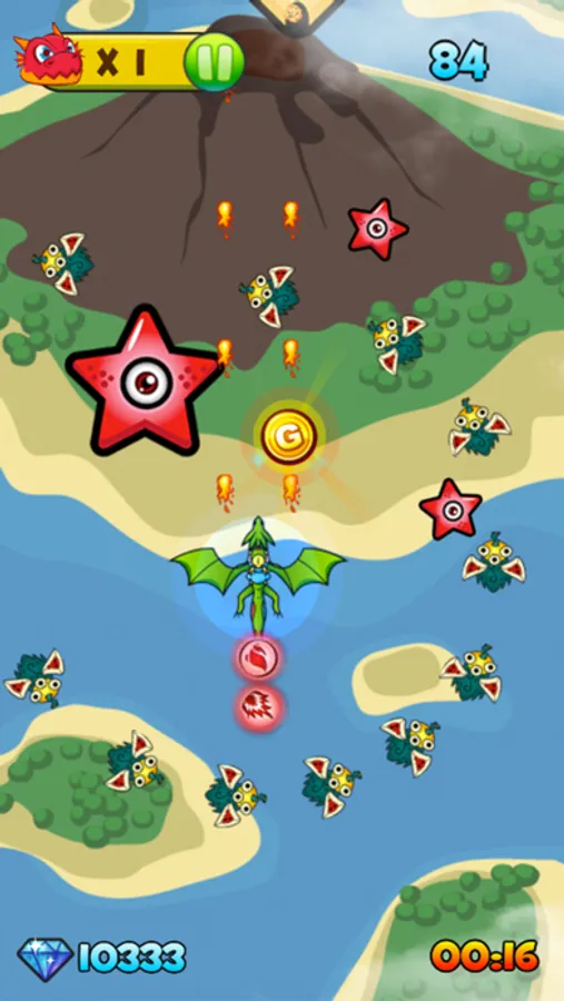 On Planet X, all kinds of monsters suddenly appeared. Our princess must drive her flying dragon to destroy those monsters and save Planet X.