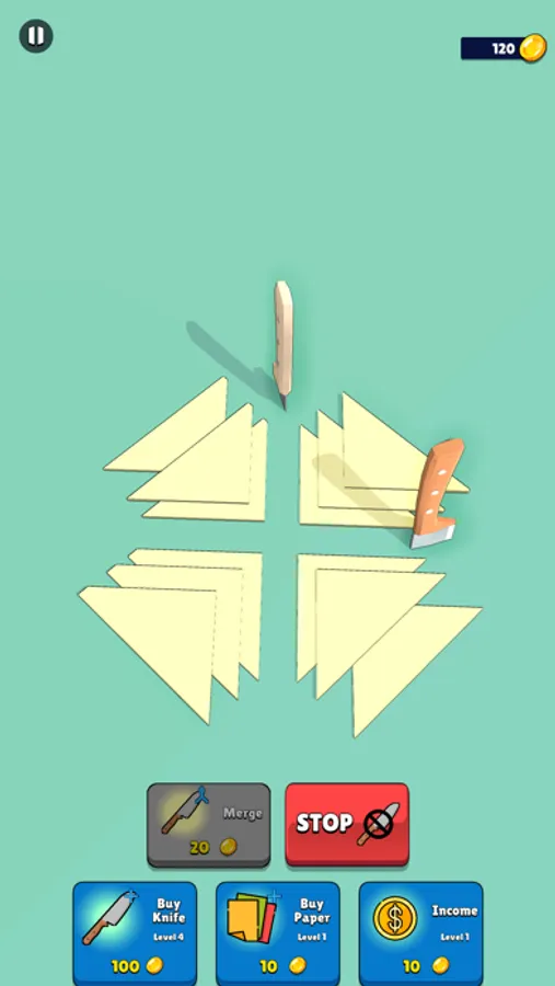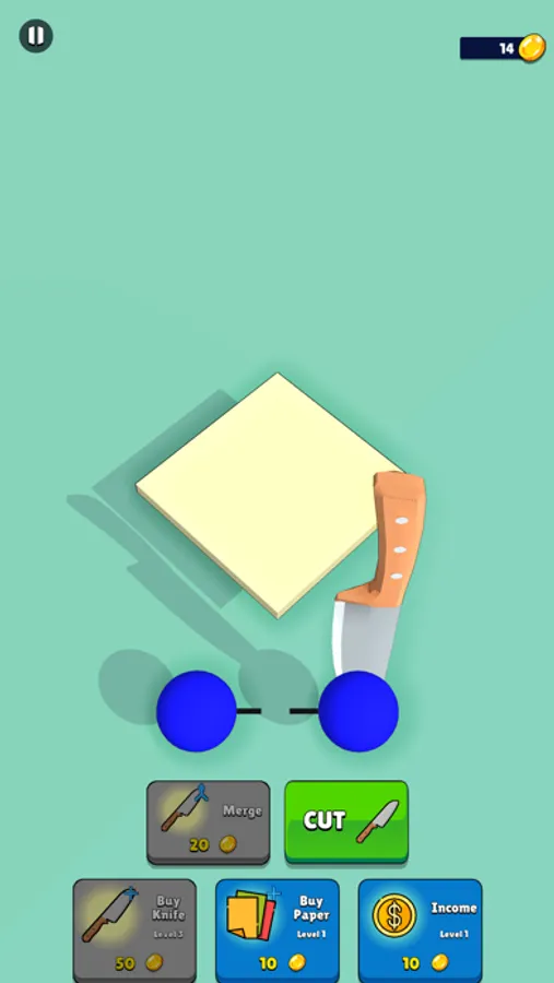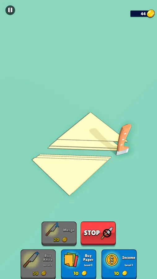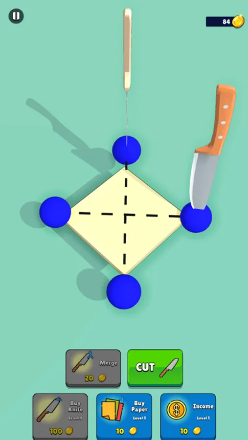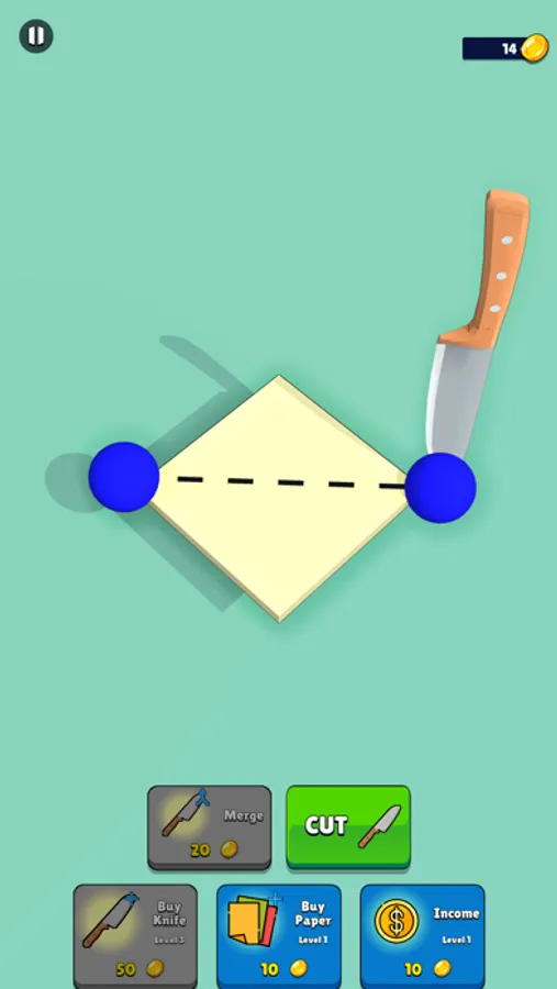 Place the dots to cut the paper, cut the paper into pieces, use increments, cut more paper and earn more money!