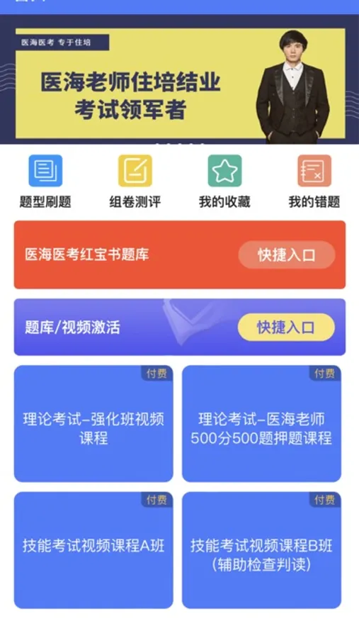 医海医考住培,专注于住院医师规范化培训相关考试的辅导,包含了历年真题相关题库和视频课程。题库功能包含了题型刷题、医海医考红宝书题库、组卷测评,题库功能多样,还有收藏夹、错题本等功能。视频课程可倍速观看,视频课程内容贴切考试大纲、内容丰富、重点突出。