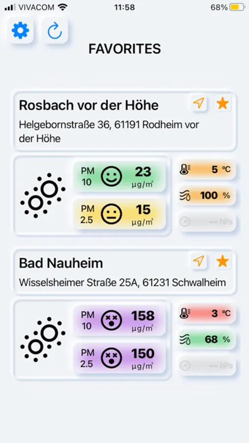 Presenting real-time data (from the Sensor.Community’s global sensor network) for the levels of atmospheric particulate matter (PM10 and PM2.5), outside air temperature, air humidity and atmospheric pressure... on a detailed map from OpenStreetMap.