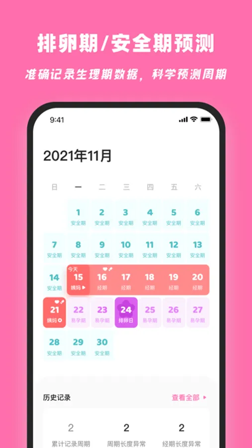 智能提醒模式,综合生理周期数据分析,越用越懂你的经期。