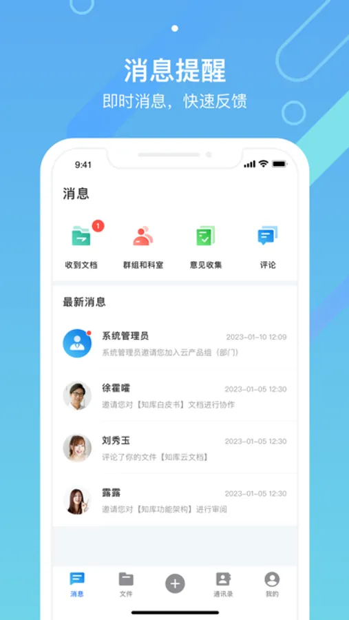 团队高效协作,内外部协同办公,确保在安全合规的环境下,实现成员之间、科室之间的文件分发、汇总、协作和灵活共享。
