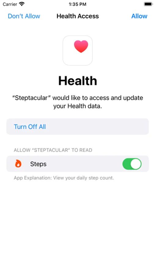 Steptacular uses Apple Health to read your daily step count, making it effortless to share and compare your steps with others.