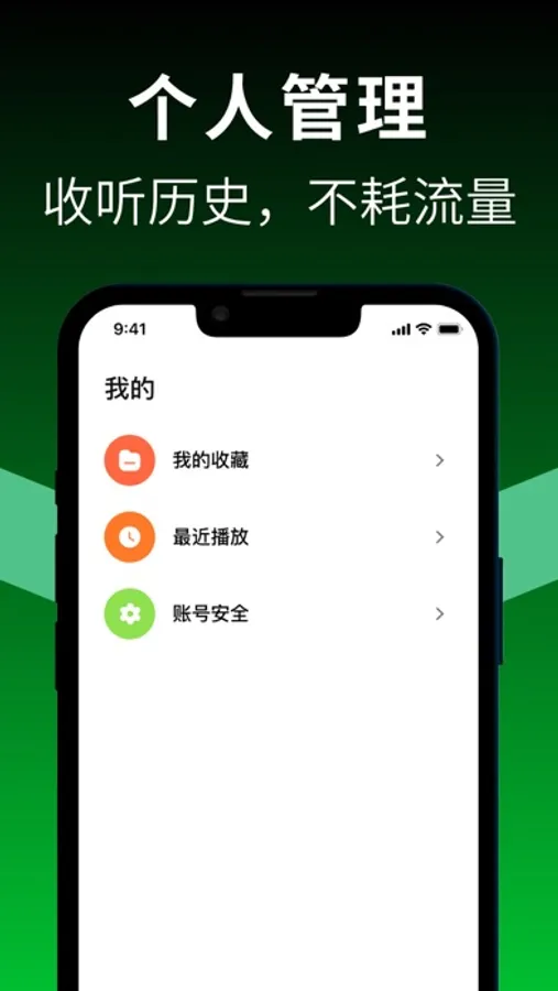 3、音乐归类整理,您可收藏自己喜欢的音乐,创建歌单快捷查询,让您随时随地都听见好音乐