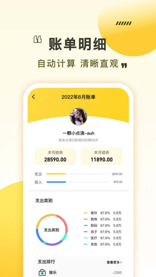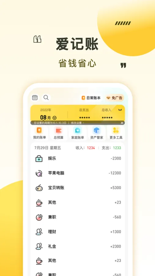 便捷好用的生活记账本,适用于旅游记账,旅行记账,生意记账,学生记账,学生账本,亲子账本,装修记账,人情记账,日常记账,家庭账本,随手记账等。再也不担心钱花哪儿了,简洁的记账流程,清晰的图表展示, 让你随时随地掌握资金流向,及时调整支出,是您满意的记账app!