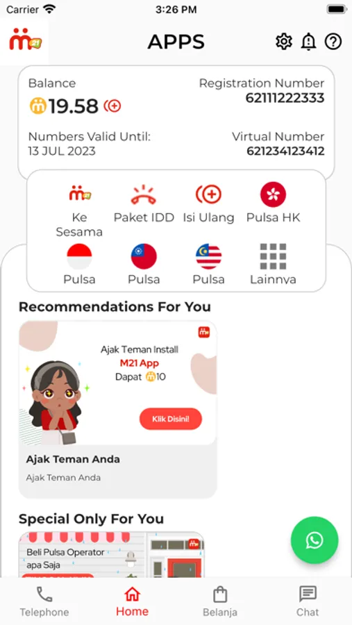 Indonesian Virtual Number (For Indonesian passport holders only)