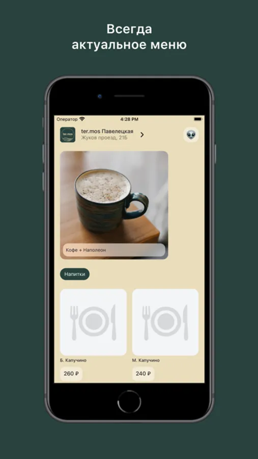 Через наше приложение можно заказать доставку всех блюд и напитков до вашего дома или самовывоз из кофейни. Ваш заказ будет доставлен в течение 40 минут. Приготовить капучино на кокосовом молоке или добавить лосось к вашему авокадо-тосту - решать вам, все модификаторы доступны в приложении. Оплачивайте картой онлайн или любым удобным способом при получении.