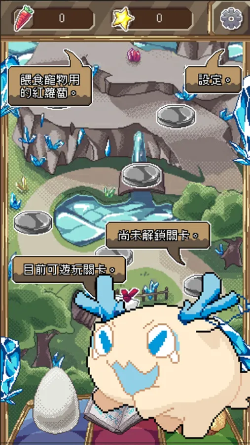 在冒險的途中獲得資源,陪養寵物,與他一同成長。
