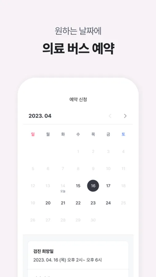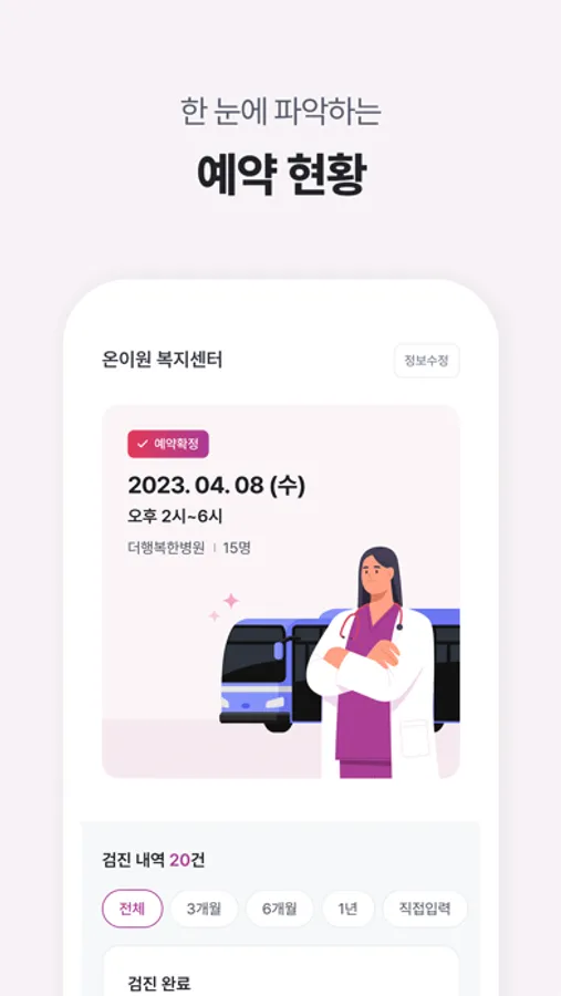- 예약 후 예약 현황을 확인할 수 있으며, 예약일이 도래하면 놓치지 않게 알려드립니다.