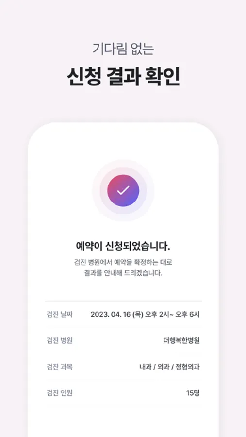 - 검진 인원 정보를 미리 등록하여, 검진 시 기다리지 않는 서비스를 제공합니다.