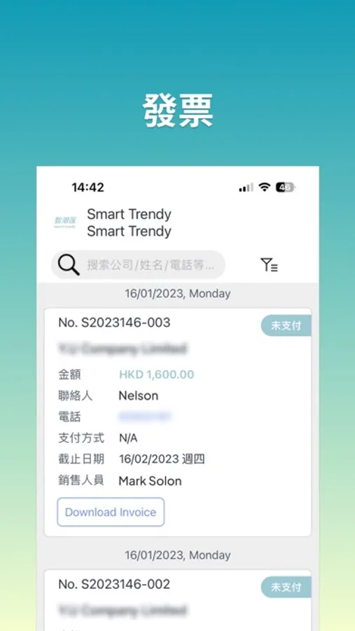 可隨時隨地更新發票信息,發送最新的發票收據給客戶,提升交易的效率。
