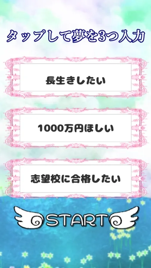 ゲームでは、まず画面をタップして夢を3つ入力しよう!