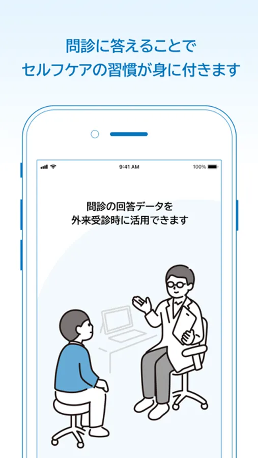アプリの問診に答えて体調を記録するだけで、セルフケアの習慣を無理なく身につけることが可能です。