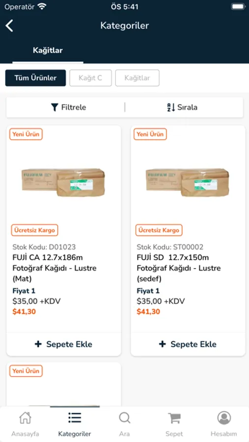 * Ürün kategorilerinde filtreleme yapabilirsiniz