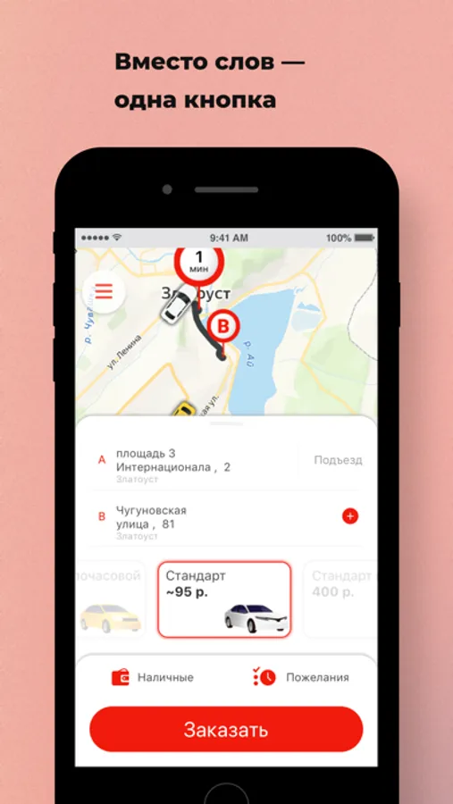 Откройте приложение, укажите адрес и закажите такси, нажав на одну кнопку.