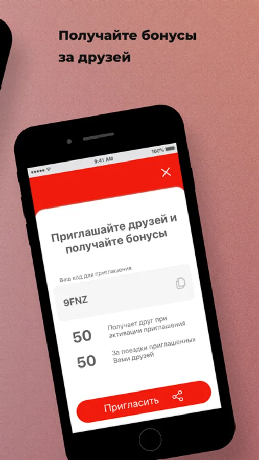 Приглашайте друзей по реферальному коду и получайте бонусы за их поездки. Используйте бонусы для оплаты Такси Империя.