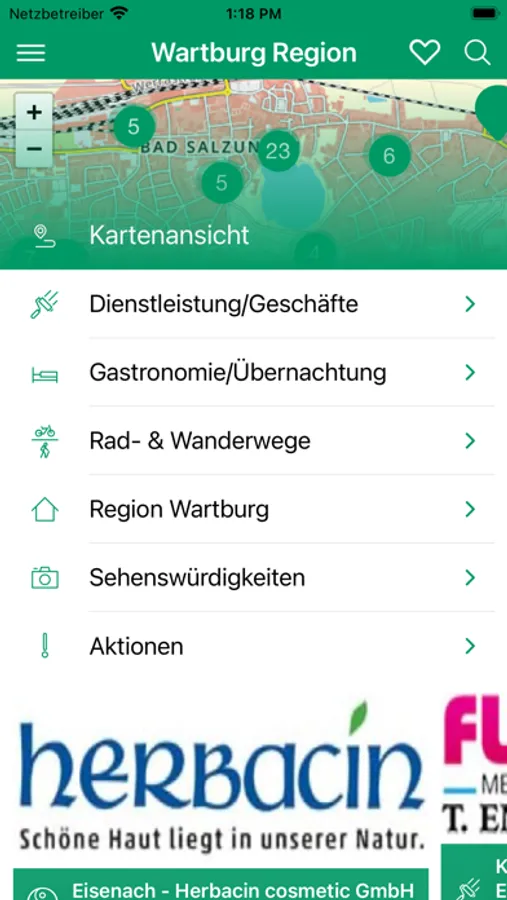 Modern und zeitgemäß präsentiert sich der stetig wachsende Anteil der Unternehmen und Institutionen, um ihre Angebote, bestehend aus Produktion, Handel, Dienstleistungen, Handwerk usw., über diese App den Gästen und Einwohnern, vorzustellen.