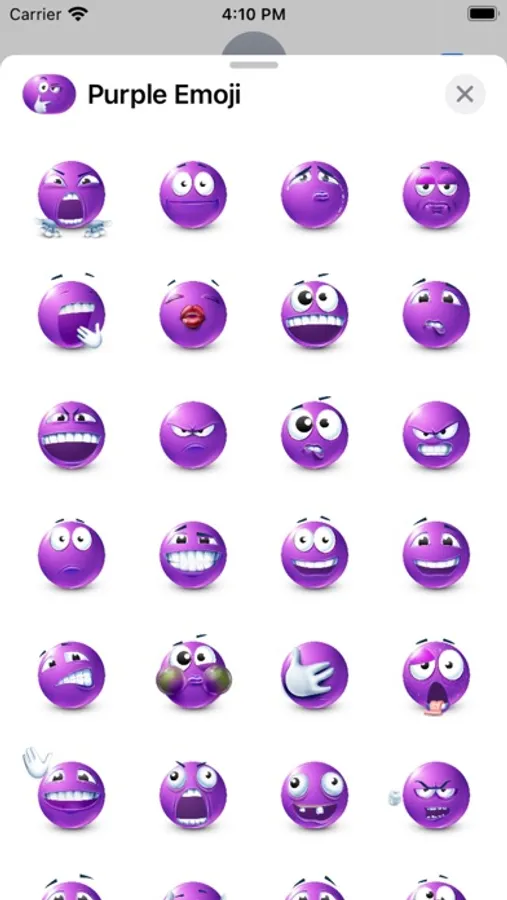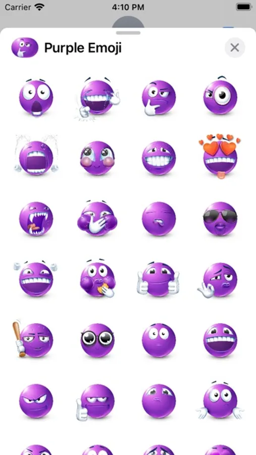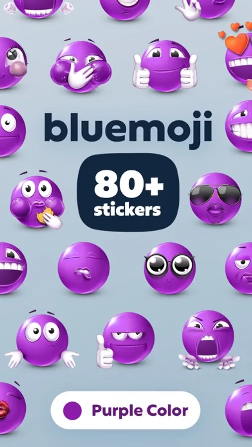 Purple Emoji Lite or Joobi are crazy emoticons stickers for your iMessage. Contains 80+ big stickers in purple color