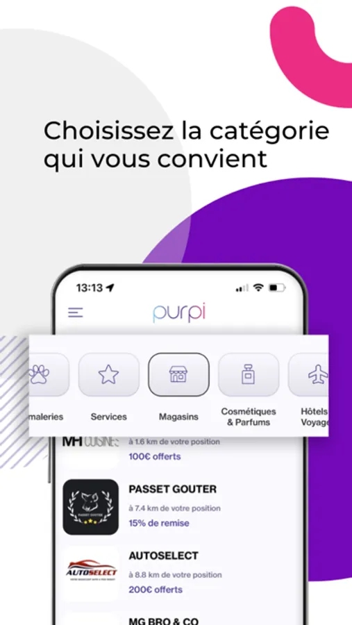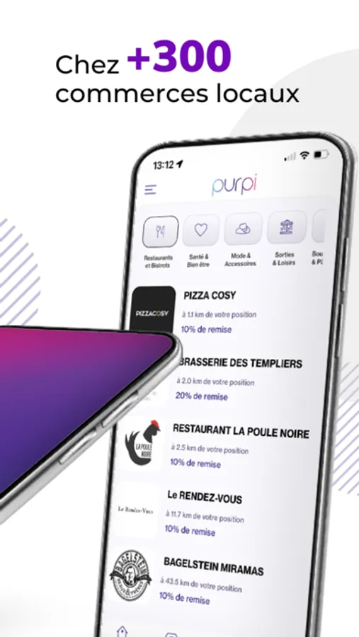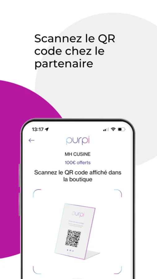 Purpi est une application mobile permettant à ses utilisateurs de profiter d’avantages client chez un réseau d’enseignes partenaires à proximité ou en ligne. Les avantages sont permanents, valables toute l’année et obtenus sur simple présentation d’un QR Code appelé “Purpi Pass”
