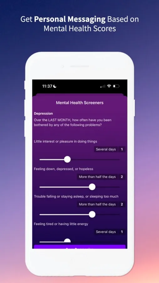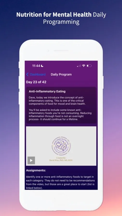 The program is personalized based on various mental health screening tools. Providing this data is not required but will create a personal experience allowing you to track your mental health progress over time. Wise Mind Nutrition was created to improve symptoms of: