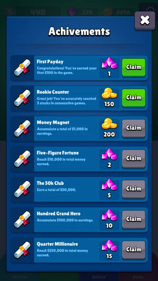 - Engaging Gameplay: Count money stacks of various currencies and sizes, keeping the excitement alive with each level.